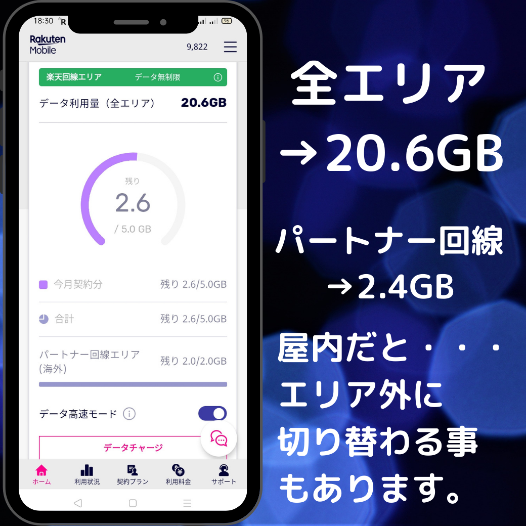 無制限エリアでも、パートナー回線につながる事もあるので、このような状況です。